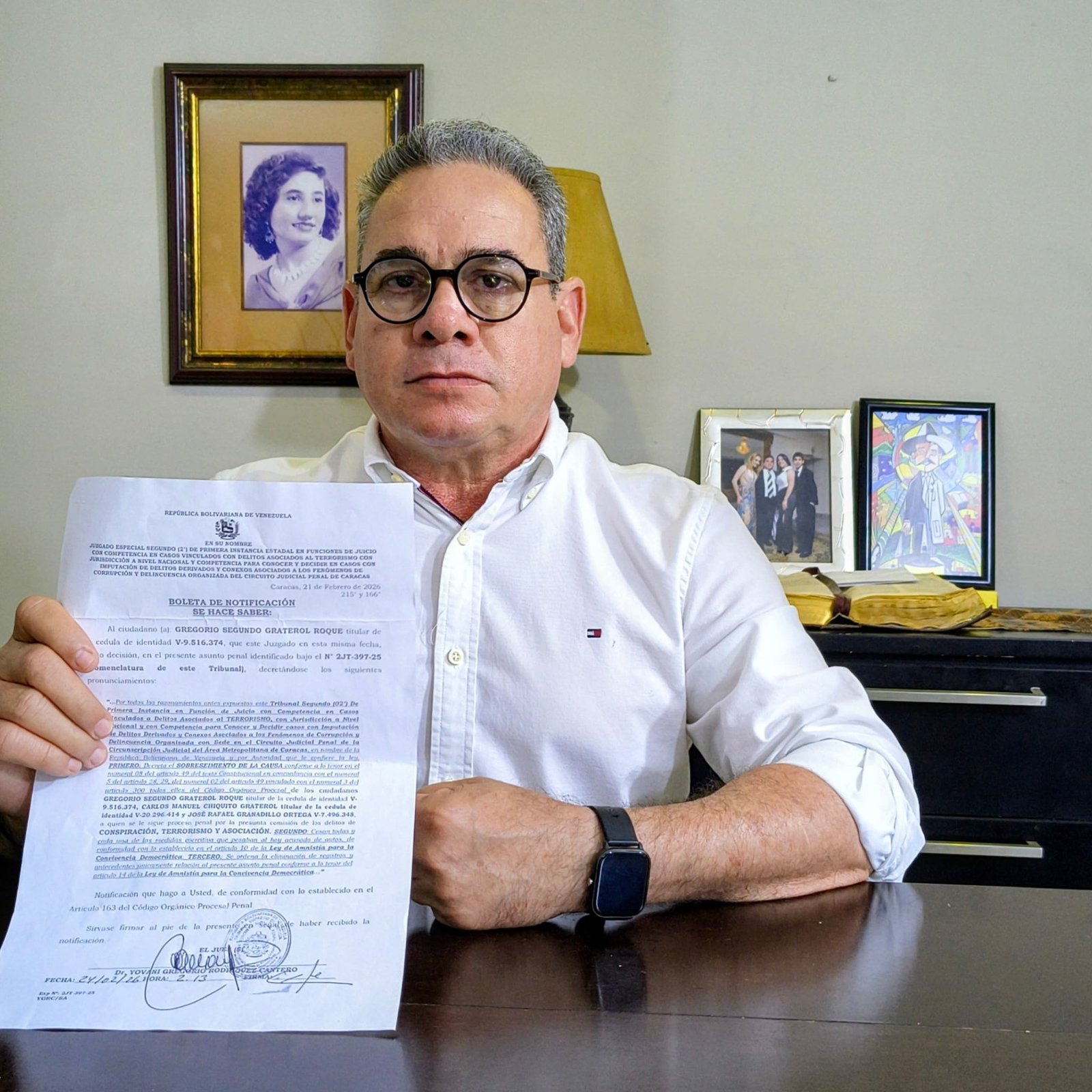 A través de una publicación en su cuenta de X, Graterol señaló que recibió la notificación oficial de su caso ocho meses después de su excarcelación.