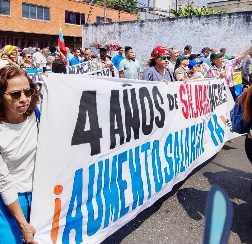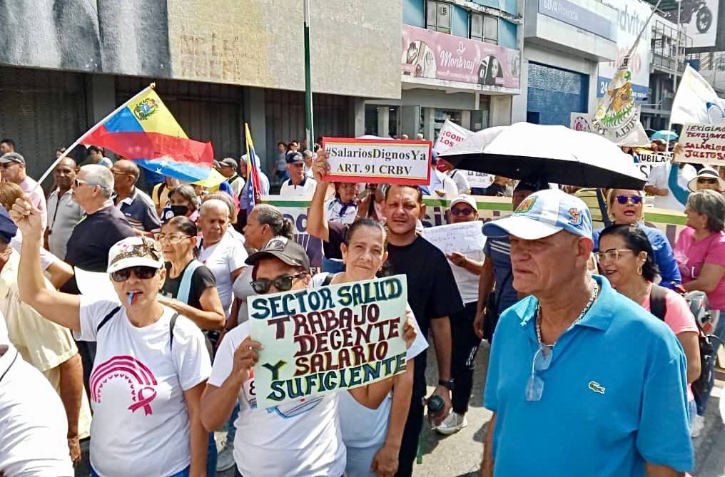 En la movilización también participó Josefina Subero, docente jubilada, quien señaló que se cumplen cuatro años desde que el Gobierno implementó un esquema de bonificaciones que ha minimizado el salario mínimo y las pensiones.