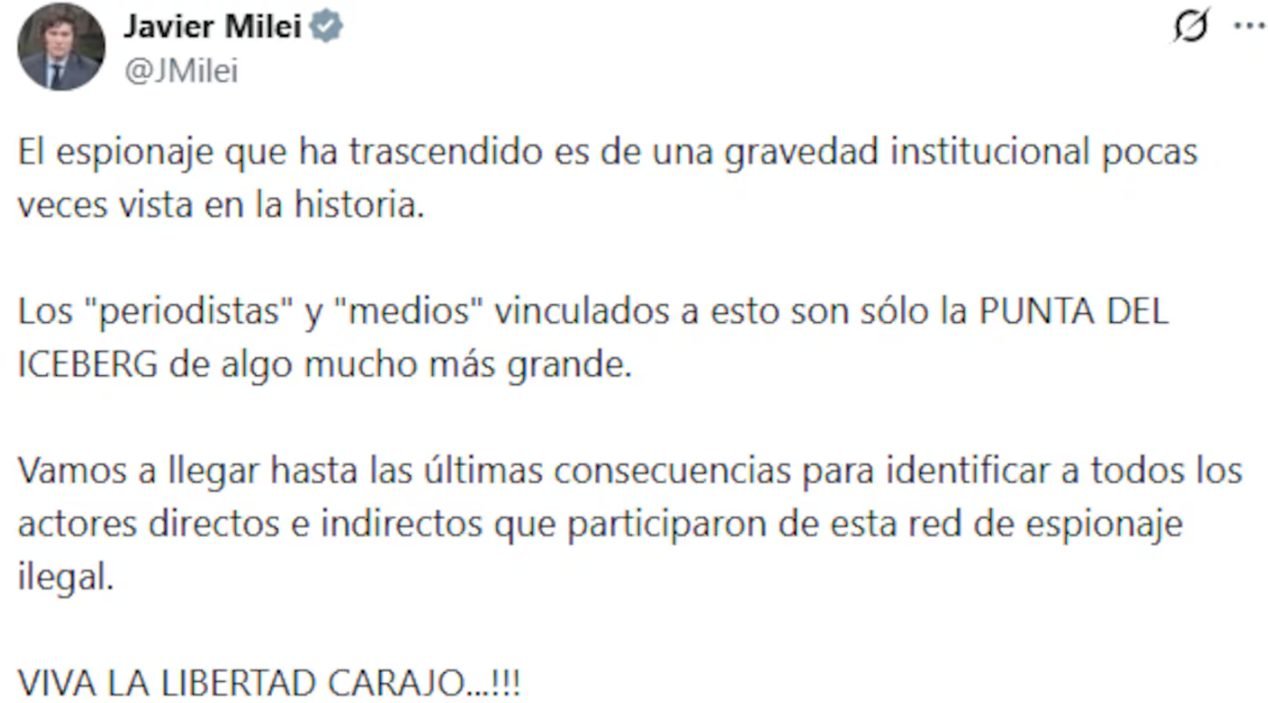 En las últimas horas salió a la luz una campaña de desinformación impulsada desde Rusia para perjudicar al presidente argentino Javier Milei. Según la investigación, la operatoria incluyó el financiamiento de cientos de artículos publicados en medios digitales argentinos con el fin de afectar la imagen del mandatario. “Vamos a llegar hasta las últimas consecuencias para identificar a todos los actores directos e indirectos que participaron de esta red de espionaje ilegal”, aseguró el jefe de Estado.