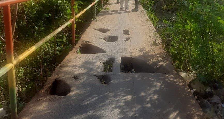 Por otro lado, puntualizaron que la gestión pasada de la alcaldía realizó una reparación a la pasarela, pero con el paso del tiempo, se ha vuelto a deteriorar al punto de que se han formado huecos en la estructura metálica, los cuales ya han ocasionado accidentes.