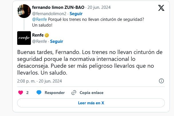 En lugar de eso, los trenes utilizan un sistema diferente. El respaldo del asiento delantero, diseñado para absorber el impacto y frenar el cuerpo de forma progresiva. En la práctica, funciona como una especie de airbag pasivo, reduciendo el daño sin inmovilizar al pasajero.