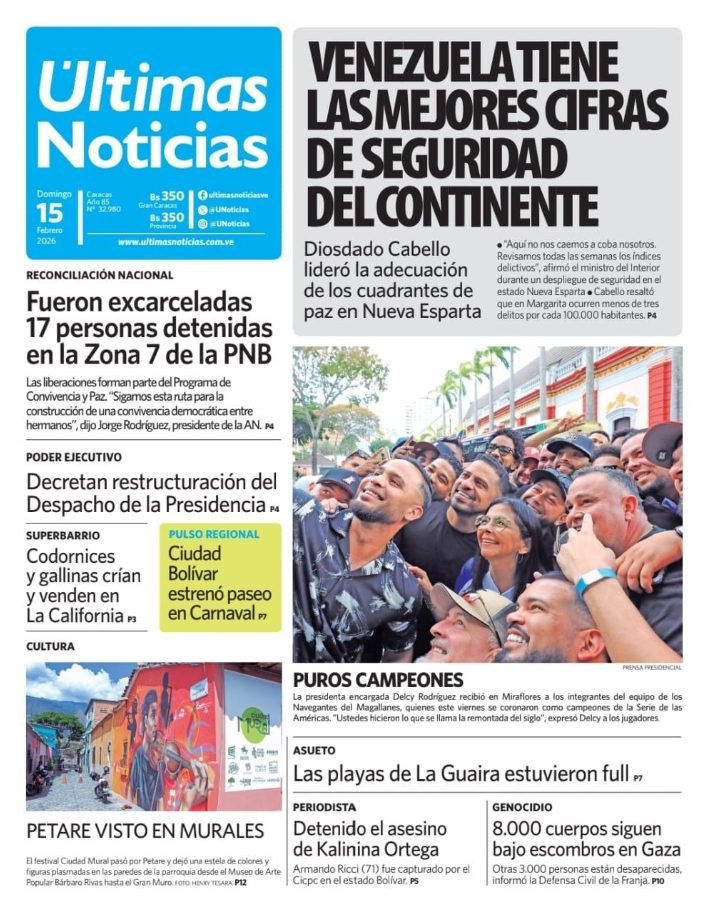 PortadasPortadas de este domingo 15 de febrero de 2026 Por Prensa venezolanoshoyfebrero 15, 202600 Share0