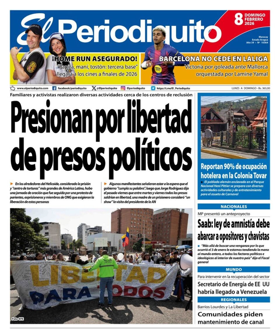 PortadasPortadas de este domingo 8 de febrero de 2026 Por Prensa venezolanoshoyfebrero 8, 202601 Share0