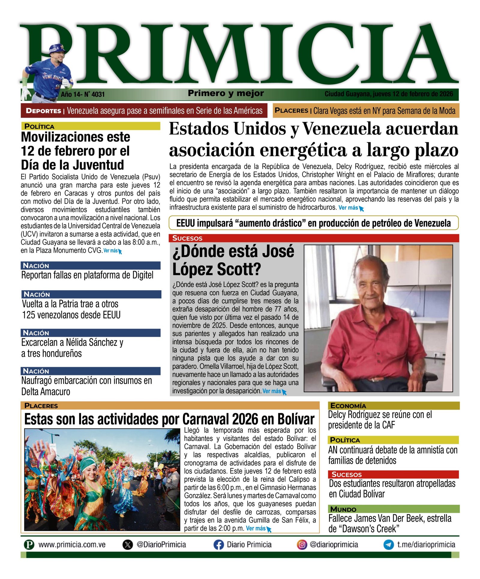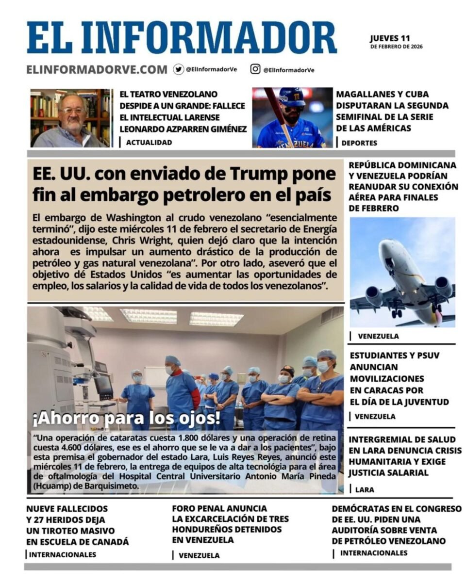 PortadasPortadas de este jueves 12 de febrero de 2026 Por Prensa venezolanoshoyfebrero 12, 202600 Share0