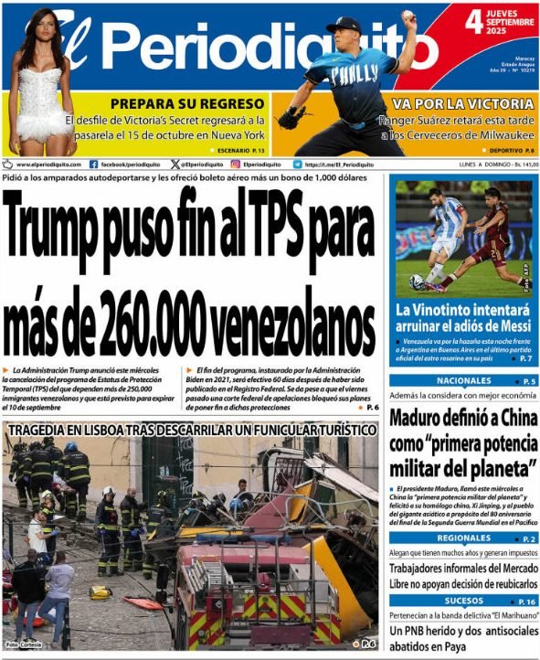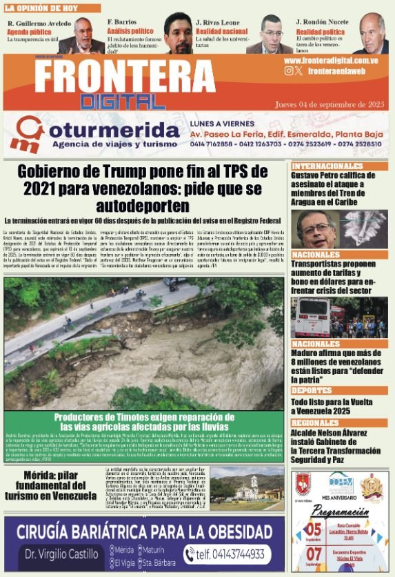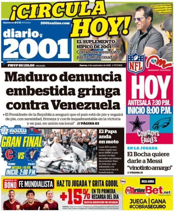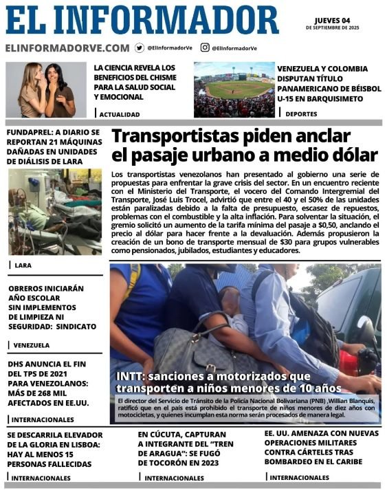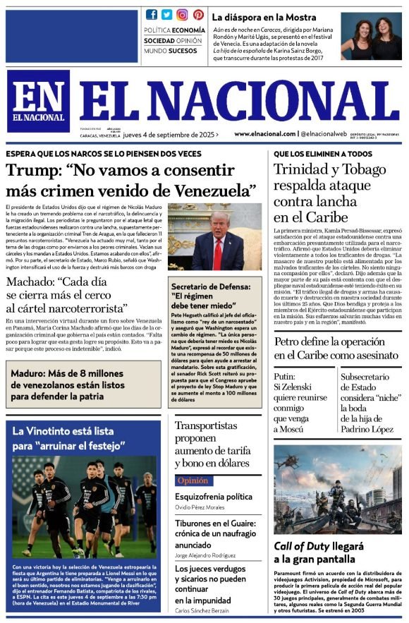 PortadasPortadas de este jueves 4 de septiembre de 2025 Por Prensa venezolanoshoyseptiembre 4, 2025013 Share0