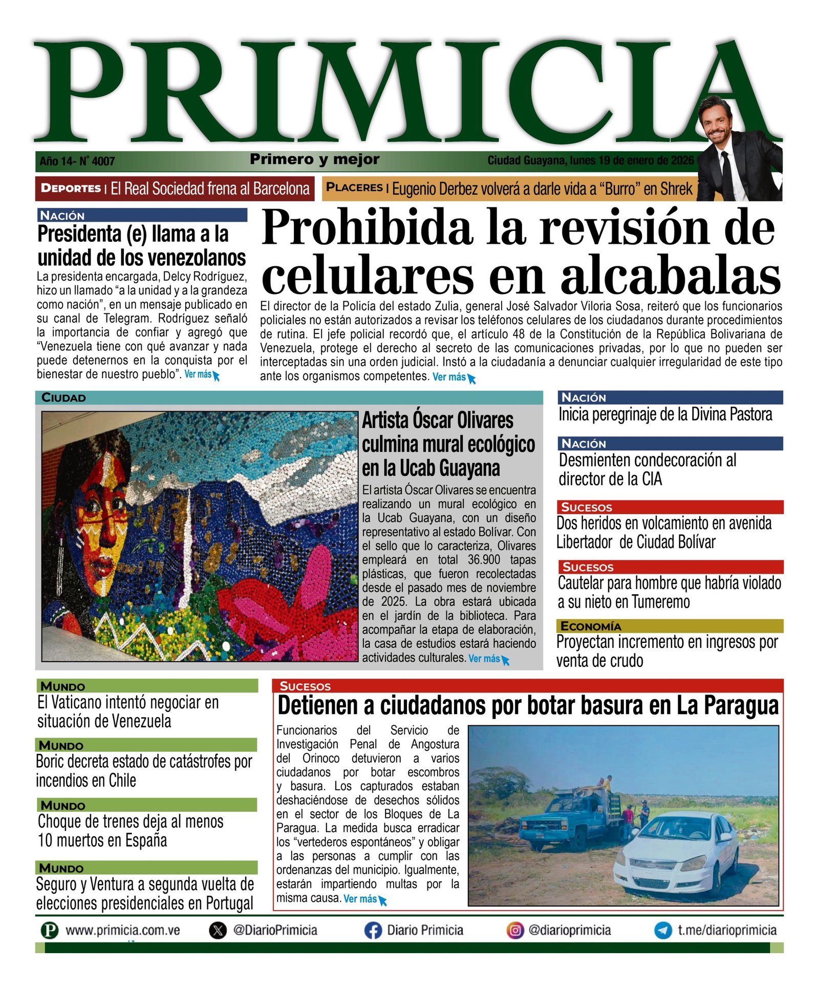 Portadas de este lunes 19 de enero de 2026
