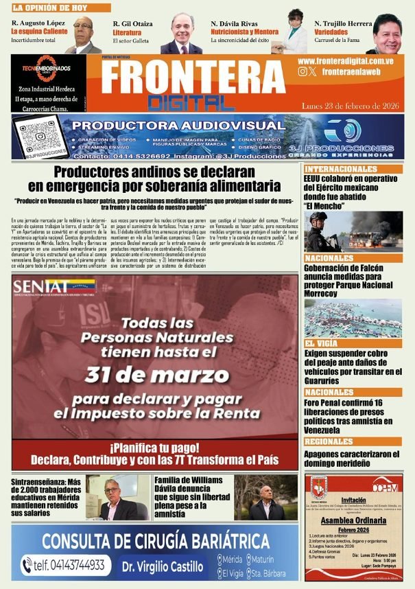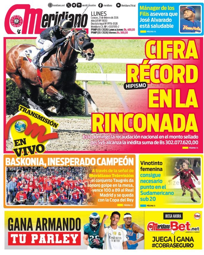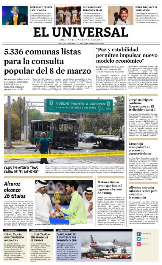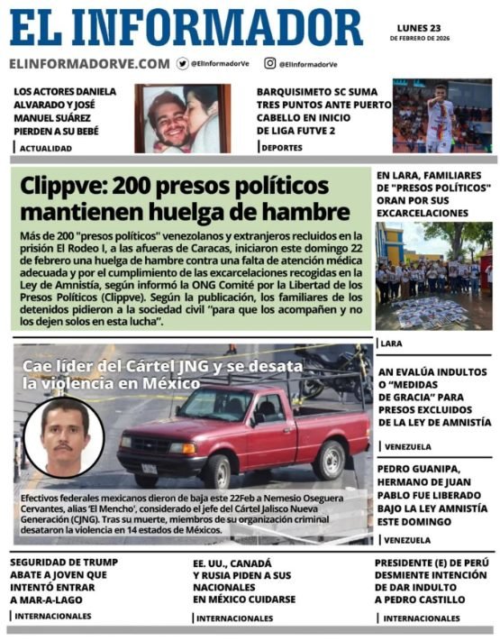 PortadasPortadas de este lunes 23 de febrero de 2026 Por Prensa venezolanoshoyfebrero 23, 202600 Share0