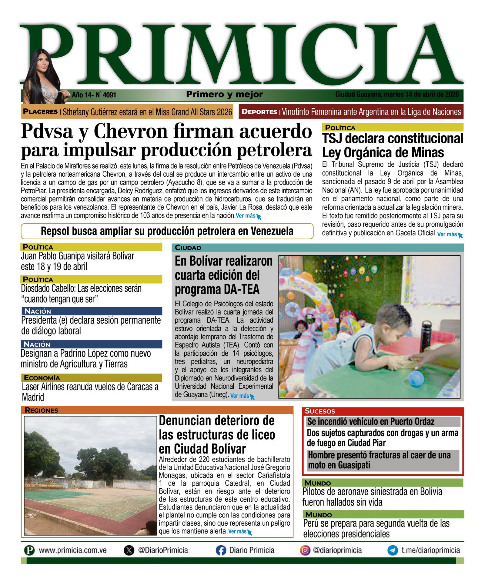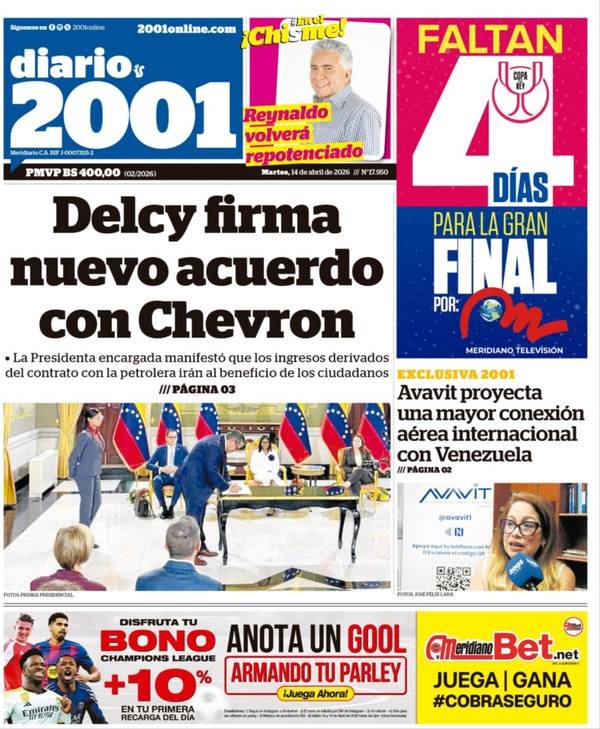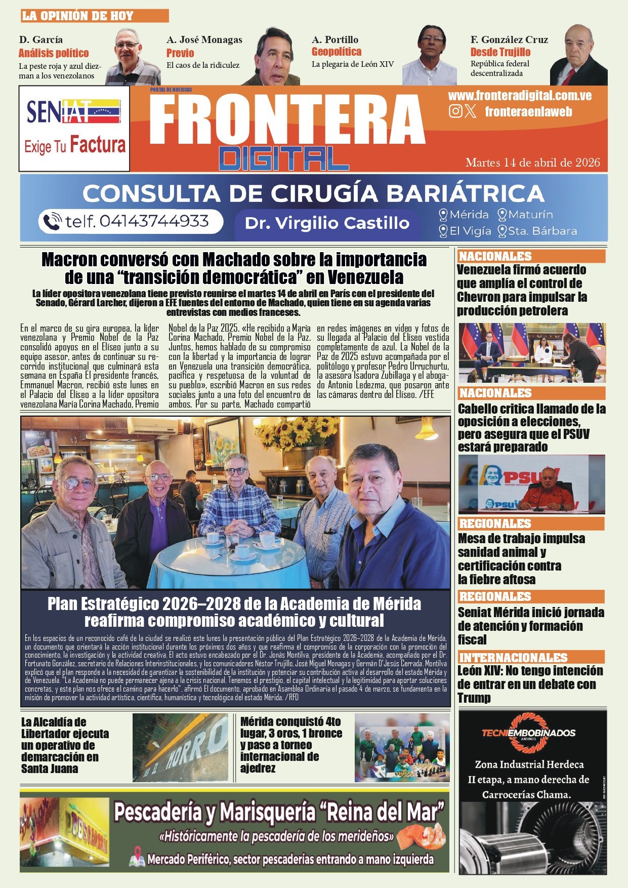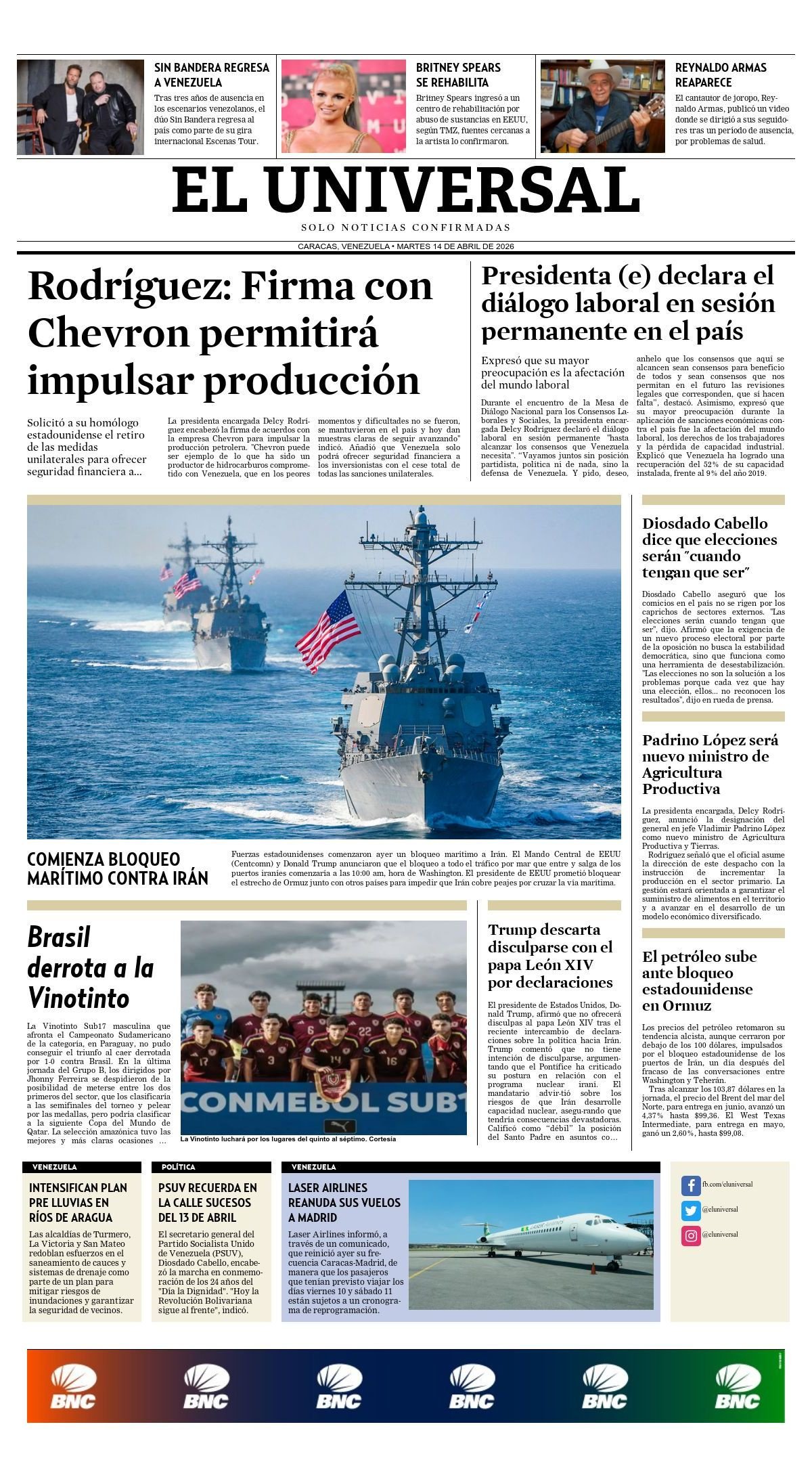 PortadasPortadas de este martes 14 de abril de 2026 Por Prensa venezolanoshoyabril 14, 202600 Share0 La noticia no descansa y nosotros tampoco ¡Únete a nuestro Centro Informativo en WhatsApp!