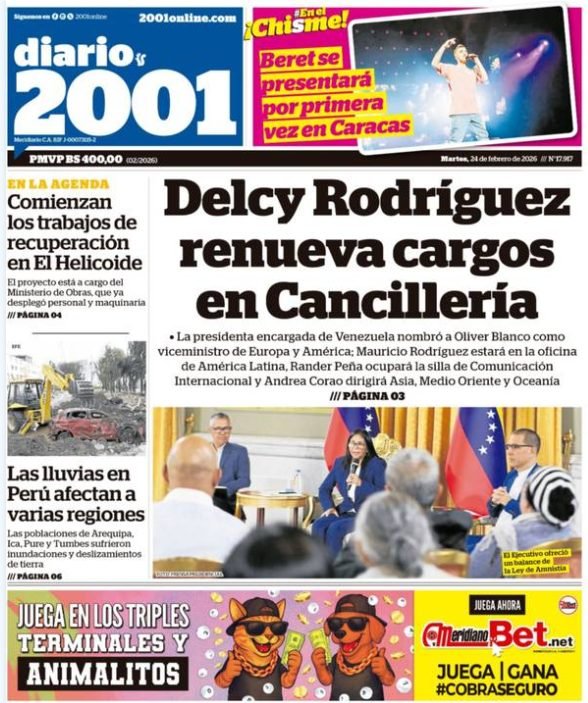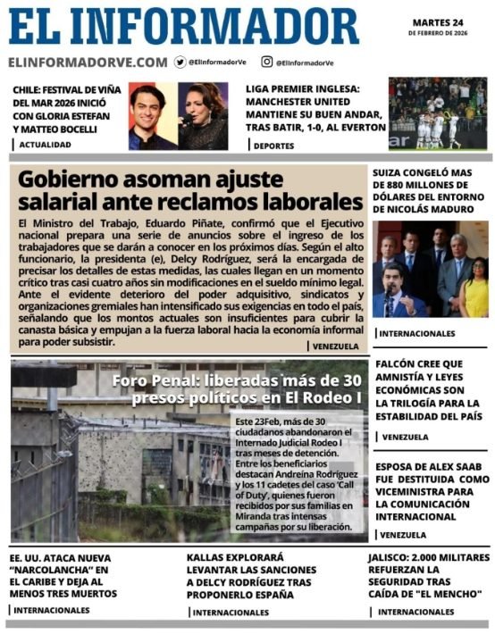 PortadasPortadas de este martes 24 de febrero de 2026 Por Prensa venezolanoshoyfebrero 24, 202603 Share0