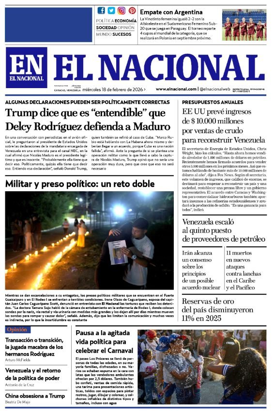 PortadasPortadas de este miércoles 18 de febrero de 2026 Por Prensa venezolanoshoyfebrero 18, 202601 Share0