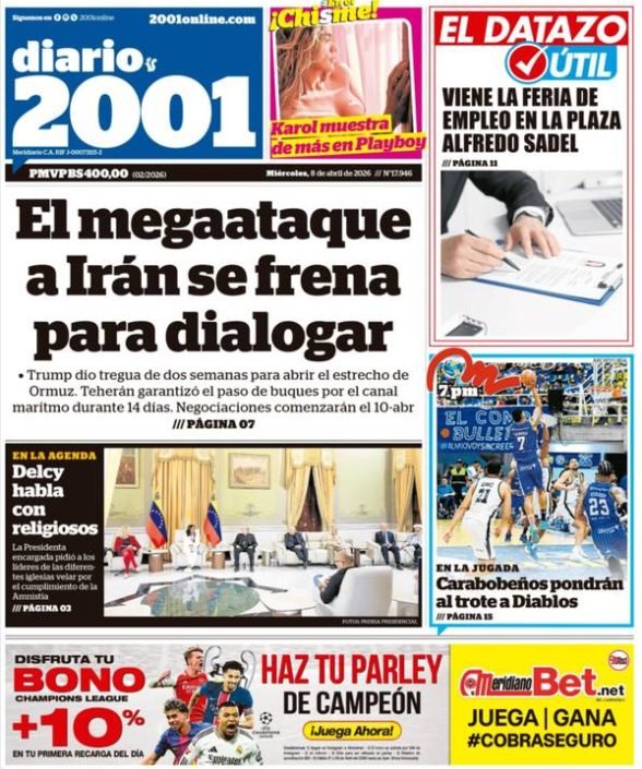 PortadasPortadas de este miércoles 8 de abril de 2026 Por Prensa venezolanoshoyabril 8, 202600 Share0