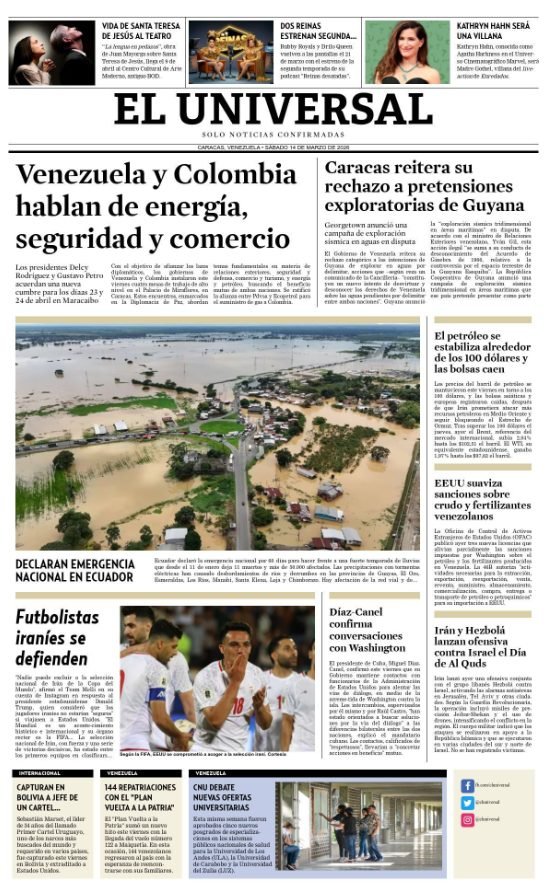 Portadas latinoamericanas de este sábado 14 de marzo de 2026