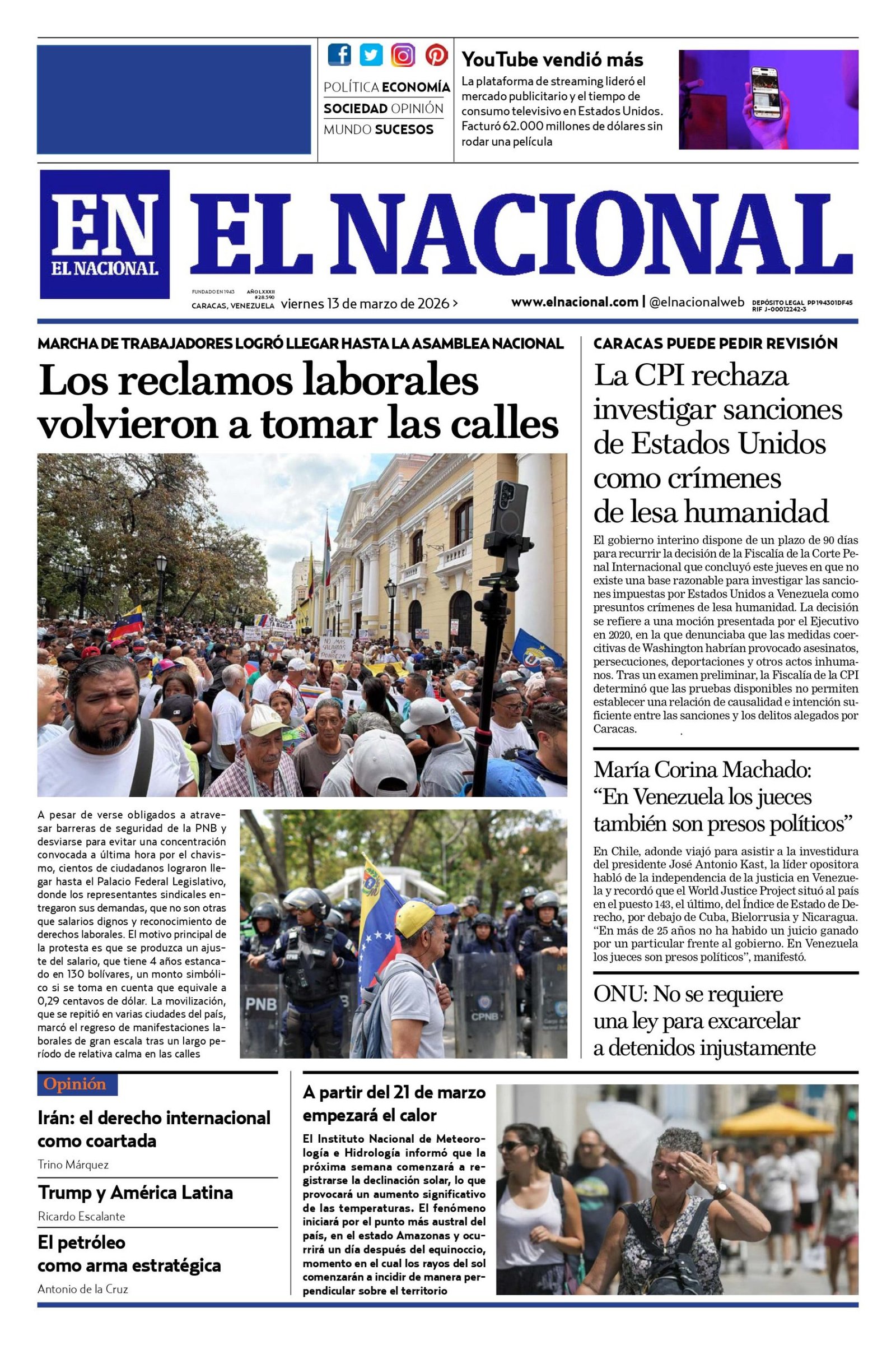 PortadasPortadas de este viernes 13 de marzo de 2026 Por Prensa venezolanoshoymarzo 13, 202600 Share0