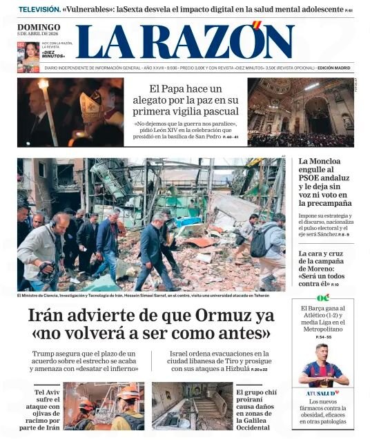 Portadasprensa internacionalPortadas de la prensa internacional de este domingo 5 de abril de 2026 Por Prensa venezolanoshoyabril 4, 202600 Share0