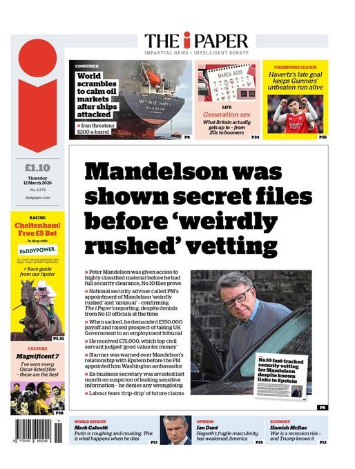 PortadasPortadas de la prensa internacional de este jueves 12 de marzo de 2026 Por Prensa venezolanoshoymarzo 11, 202600 Share0