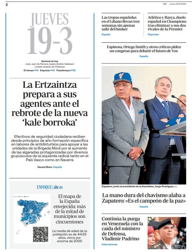 PortadasPortadas de la prensa internacional de este jueves 19 de marzo de 2026 Por Prensa venezolanoshoymarzo 18, 202600 Share0