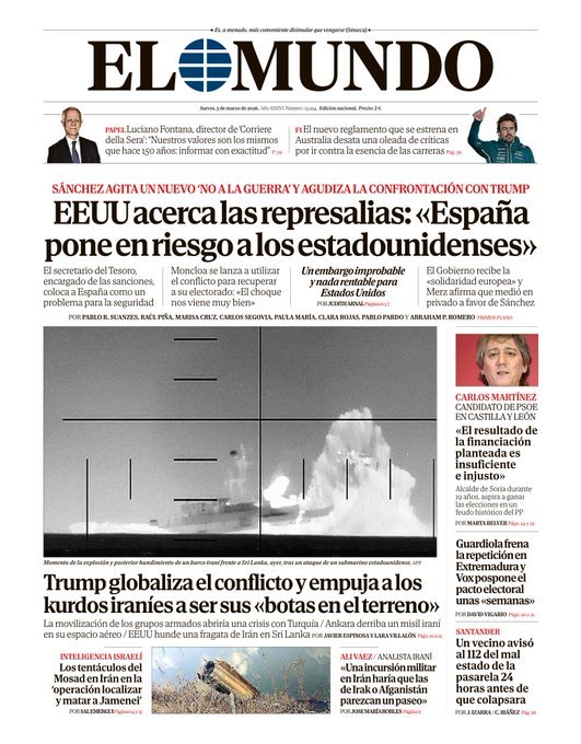 PortadasPortadas de la prensa internacional de este jueves 5 de marzo de 2026 Por Prensa venezolanoshoymarzo 4, 202601 Share0