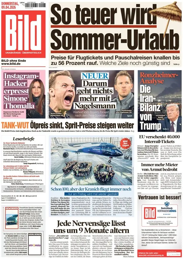 PortadasPortadas de la prensa internacional de este jueves 9 de abril de 2026 Por Prensa venezolanoshoyabril 8, 202602 Share0