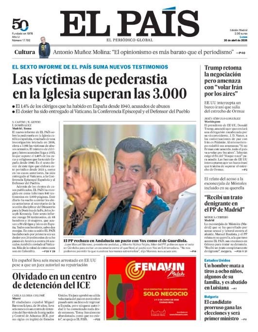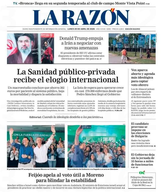 Portadasprensa internacionalPortadas de la prensa internacional de este lunes 20 de abril de 2026 Por Prensa venezolanoshoyabril 19, 202600 Share0