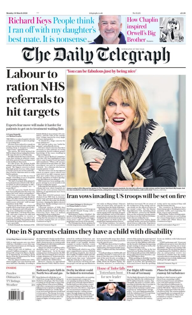 PortadasPortadas de la Prensa InternacionalPortadas de la prensa internacional de este lunes 30 de marzo de 2026 Por Prensa venezolanoshoymarzo 29, 202600 Share0