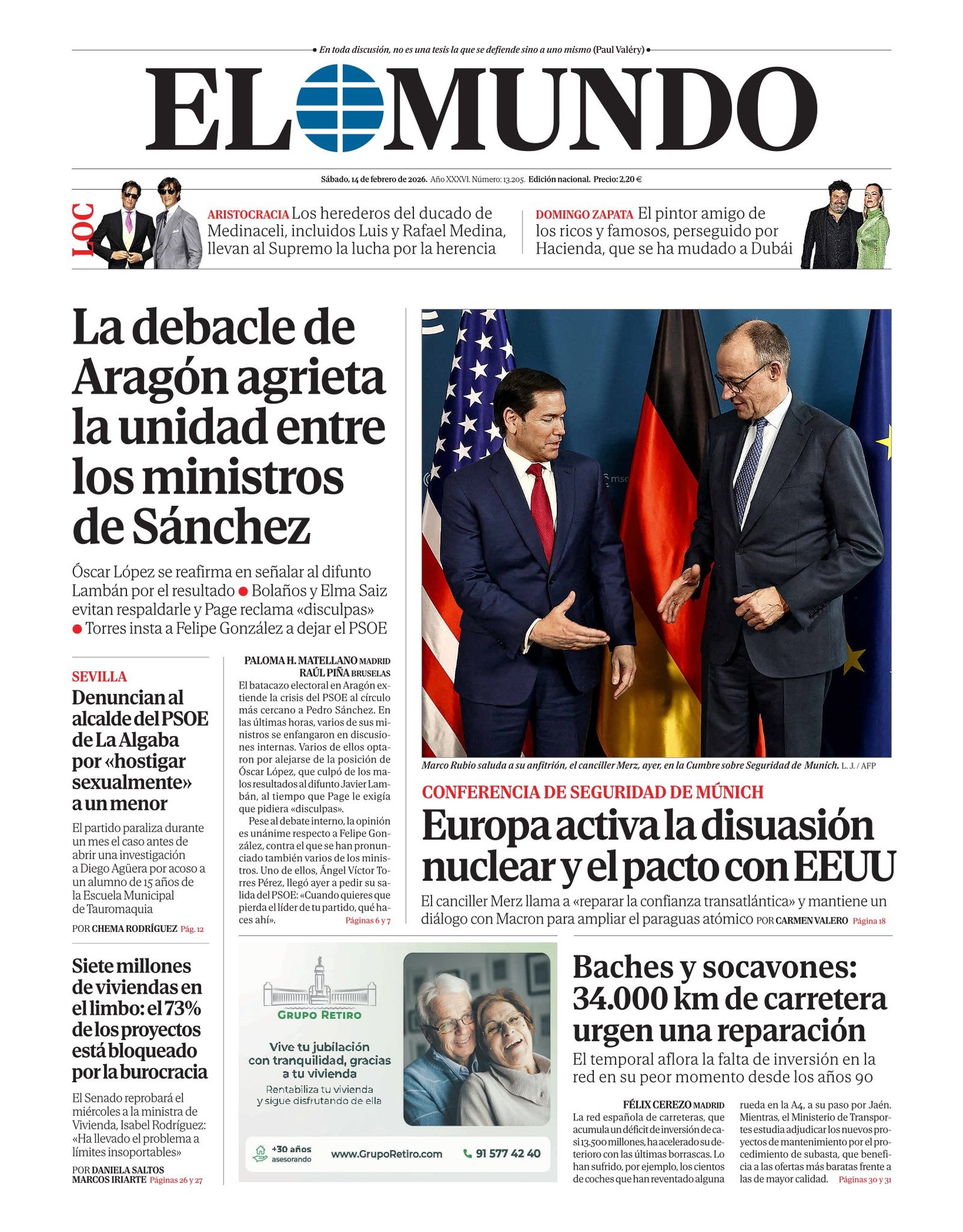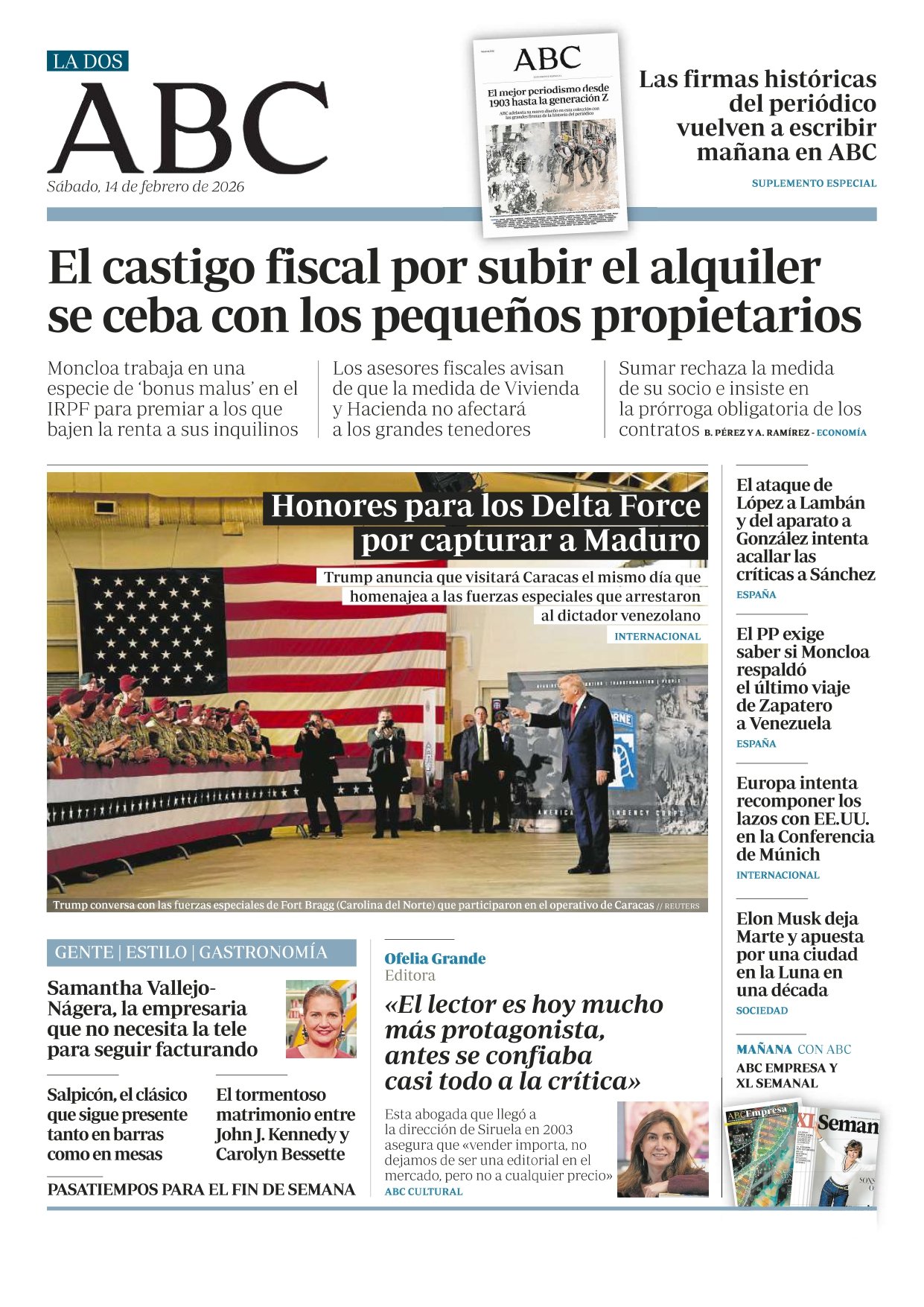 PortadasPortadas de la prensa internacional de este sábado 14 de febrero de 2026 Por Prensa venezolanoshoyfebrero 13, 202600 Share0