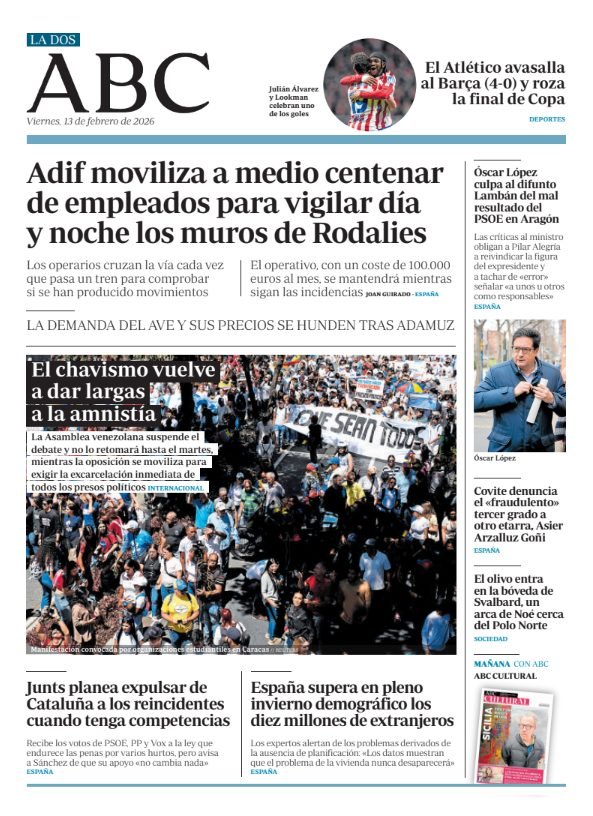 PortadasPortadas de la prensa internacional de este viernes 13 de febrero de 2026 Por Prensa venezolanoshoyfebrero 12, 202600 Share0