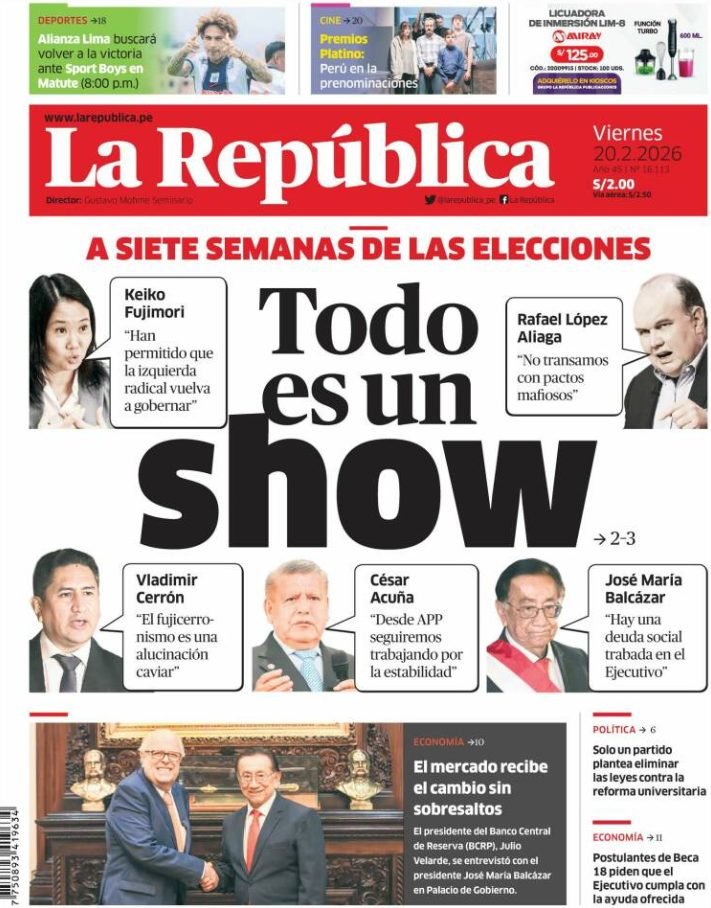 PortadasPortadas latinoamericanas de este 20 de febrero de 2026 Por Prensa venezolanoshoyfebrero 20, 202600 Share0