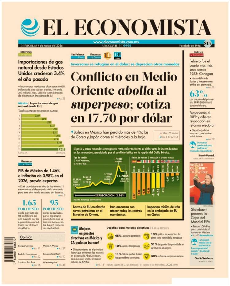 PortadasPortadas latinoamericanasprensa internacionalPortadas latinoamericanas de este 4 de marzo de 2026 Por Prensa venezolanoshoymarzo 4, 202600 Share0