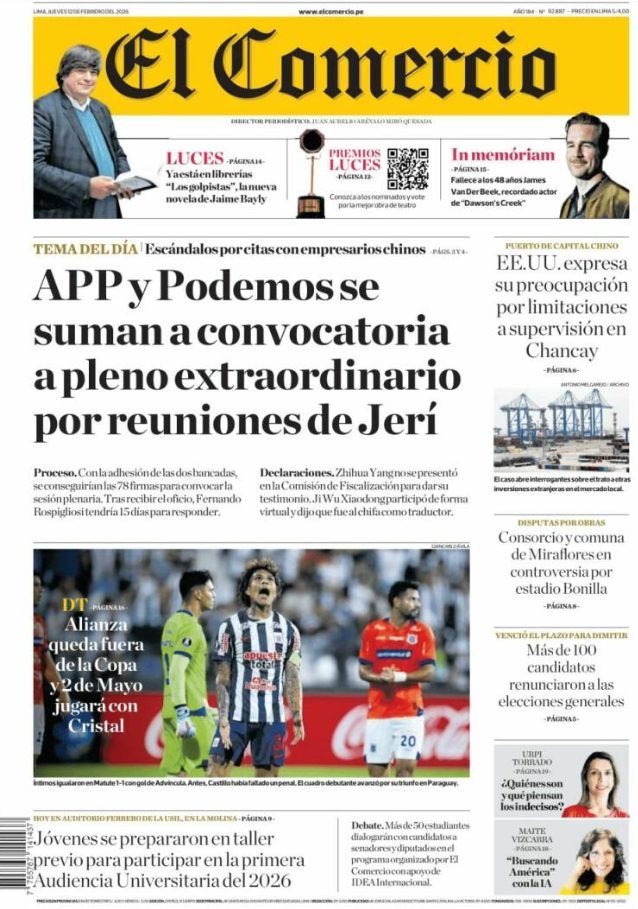PortadasPortadas latinoamericanas de este jueves 12 de febrero de 2026 Por Prensa venezolanoshoyfebrero 12, 202600 Share0