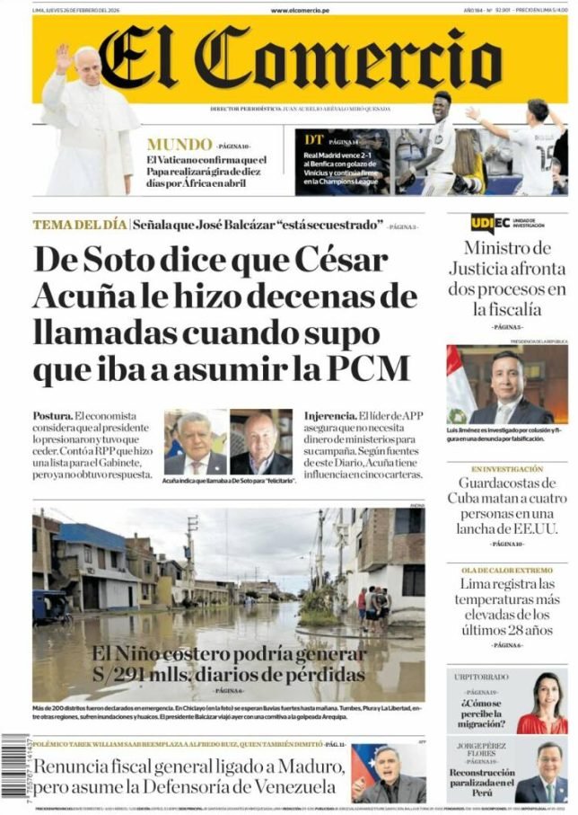 PortadasPortadas latinoamericanas de este jueves 26 de febrero de 2026 Por Prensa venezolanoshoyfebrero 26, 202600 Share0