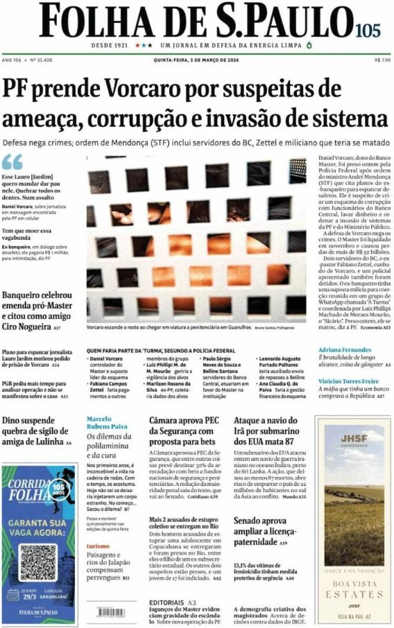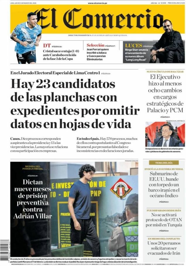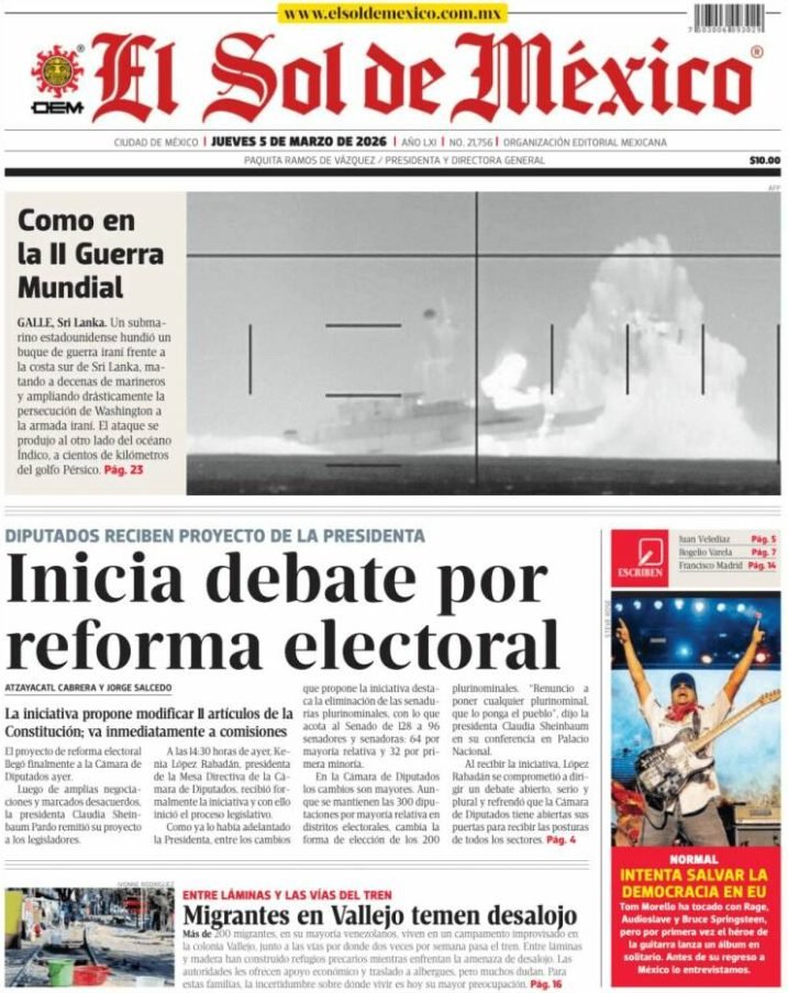 PortadasPortadas latinoamericanas de este jueves 5 de marzo de 2026 Por Prensa venezolanoshoymarzo 5, 202601 Share0