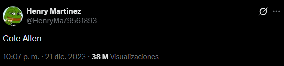 La publicación, atribuida a un usuario identificado como Henry Martinez, comenzó a viralizarse horas después de que se confirmara la identidad del detenido, provocando un aumento significativo en su alcance. De acuerdo con capturas difundidas en distintas plataformas, el mensaje no incluía contexto adicional ni referencias, lo que ha generado distintas interpretaciones entre usuarios.