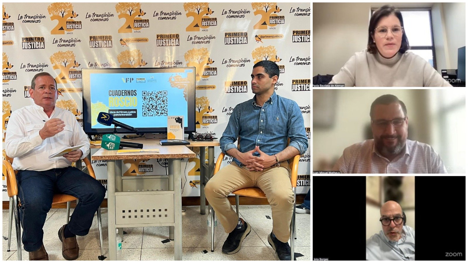 El partido Primero Justicia presentó este jueves la primera edición de los “Cuadernos Roscio”, una publicación que incluye los aportes del partido político al proceso de transición en Venezuela, durante una rueda de prensa híbrida que estuvo encabezada por el líder nacional Juan Pablo Guanipa.