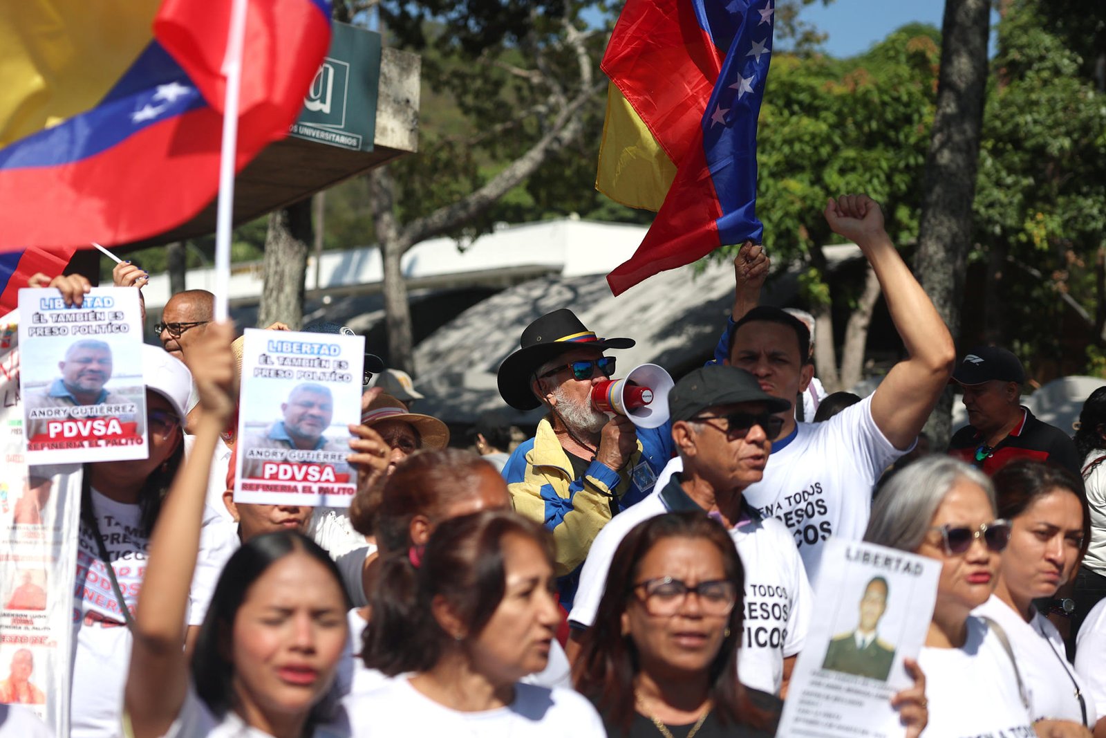 «Ni uno, ni dos, que sean todos», corearon los manifestantes, en referencia al proceso de excarcelaciones de presos políticos iniciado el 8 de enero, por el cual la ONG Foro Penal ha verificado 431 liberaciones hasta el 10 de febrero, mientras que estima que aún hay más de 600 encarcelados.