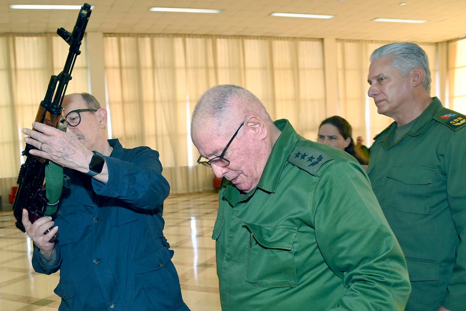 El músico recibió el fusil en un acto solemne, en presencia del presidente cubano, Miguel Díaz-Canel, y de manos del ministro de las Fuerzas Armadas Revolucionarias, Álvaro López Miera, informó en redes sociales el Gobierno cubano.