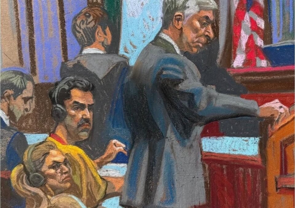 La difusión de nuevos bocetos de la sala de audiencias ofreció este jueves 26 de marzo detalles visuales inéditos de la reciente comparecencia de Nicolás Maduro y Cilia Flores ante un tribunal federal de Manhattan, donde el expresidente y su esposa enfrentan cargos por narcoterrorismo.