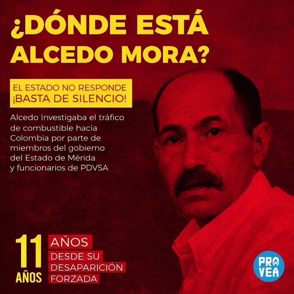 La ONG Programa Venezolano de Educación Acción en Derechos Humanos (Provea) denunció este sábado que se cumplen 11 años de la «desaparición forzada» del dirigente social Alcedo Mora, quien había denunciado presuntos hechos de corrupción en la estatal petrolera Pdvsa.