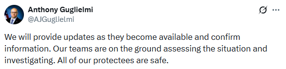 El jefe de comunicaciones de la agencia federal, Anthony Guglielmi, informó a través de un parte oficial que el presidente y la primera dama se encuentran totalmente a salvo. Así mismo, el vocero estadounidense garantizó la integridad física de todas las figuras públicas que se encontraban bajo su esquema de protección durante el evento.