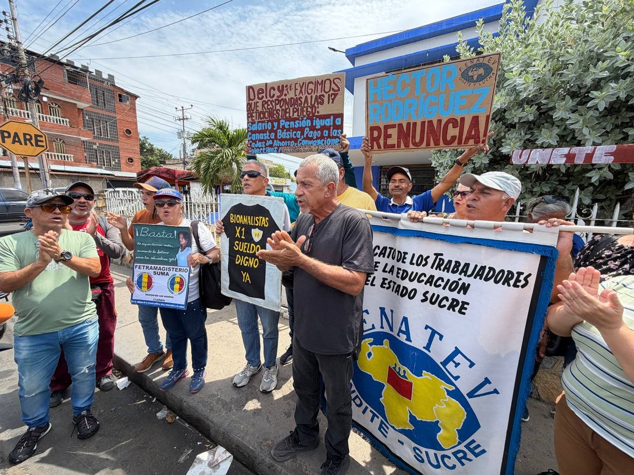 Por su parte, el Comando Intersindical del Magisterio denunció la grave situación que atraviesa la ciudad de Cumaná y los municipios Bolívar, Mejía y Cruz Salmerón Acosta debido a la falta de agua potable.