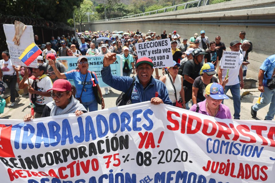 Los trabajadores marcharon este jueves para pedir aumentos salariales y el cese de la persecución contra los dirigentes sindicales, pero la manifestación en Caracas fue bloqueada y reprimida por la policía antes de llegar al palacio presidencial de Miraflores, el destino original de la protesta.