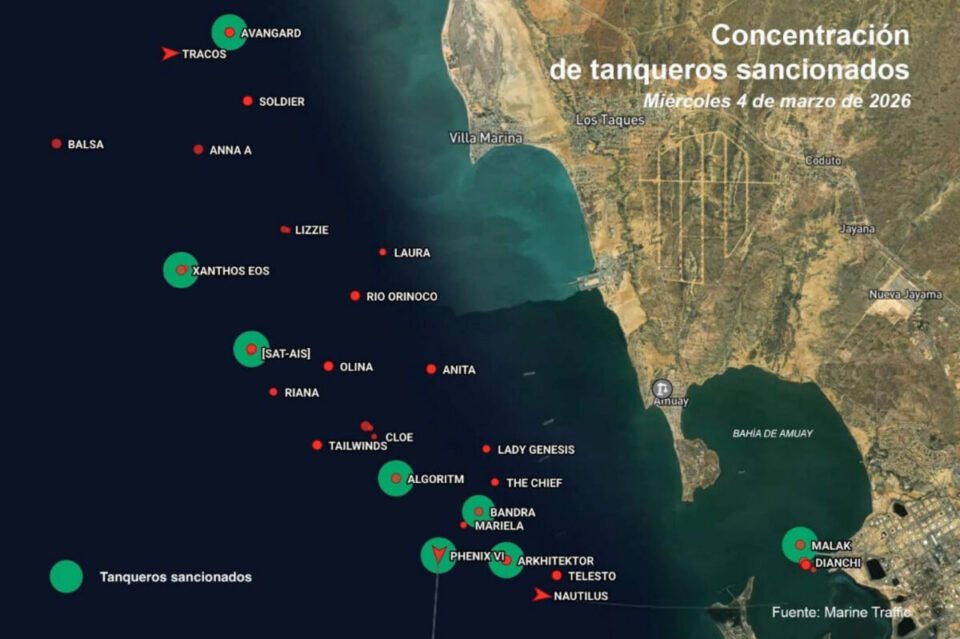 La organización no gubernamental (ONG) Transparencia Venezuela advirtió el 5 de marzo que al menos nueve buques petroleros bajo sanciones de Estados Unidos continúan operando en las terminales de las costas del país.