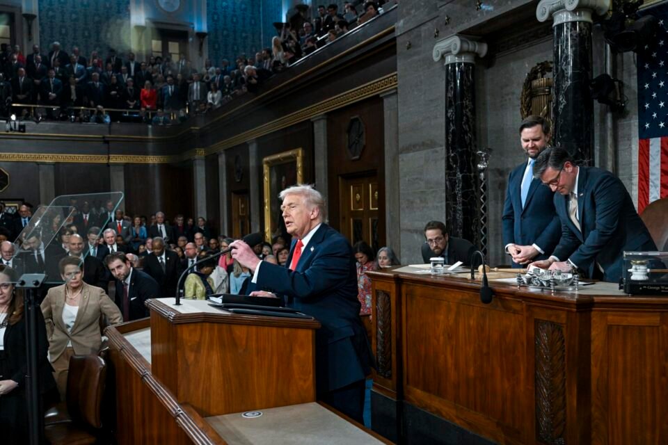 El presidente de Estados Unidos, Donald Trump, pronuncia su primer discurso sobre el Estado de la Unión de su segundo mandato ante una sesión conjunta del Congreso en la Cámara de Representantes del Capitolio, en Washington, D.C., EE.UU., el 24 de febrero de 2026. EFE/EPA/KENNY HOLSTON / POOL
