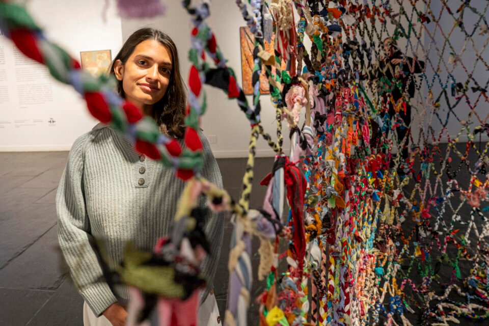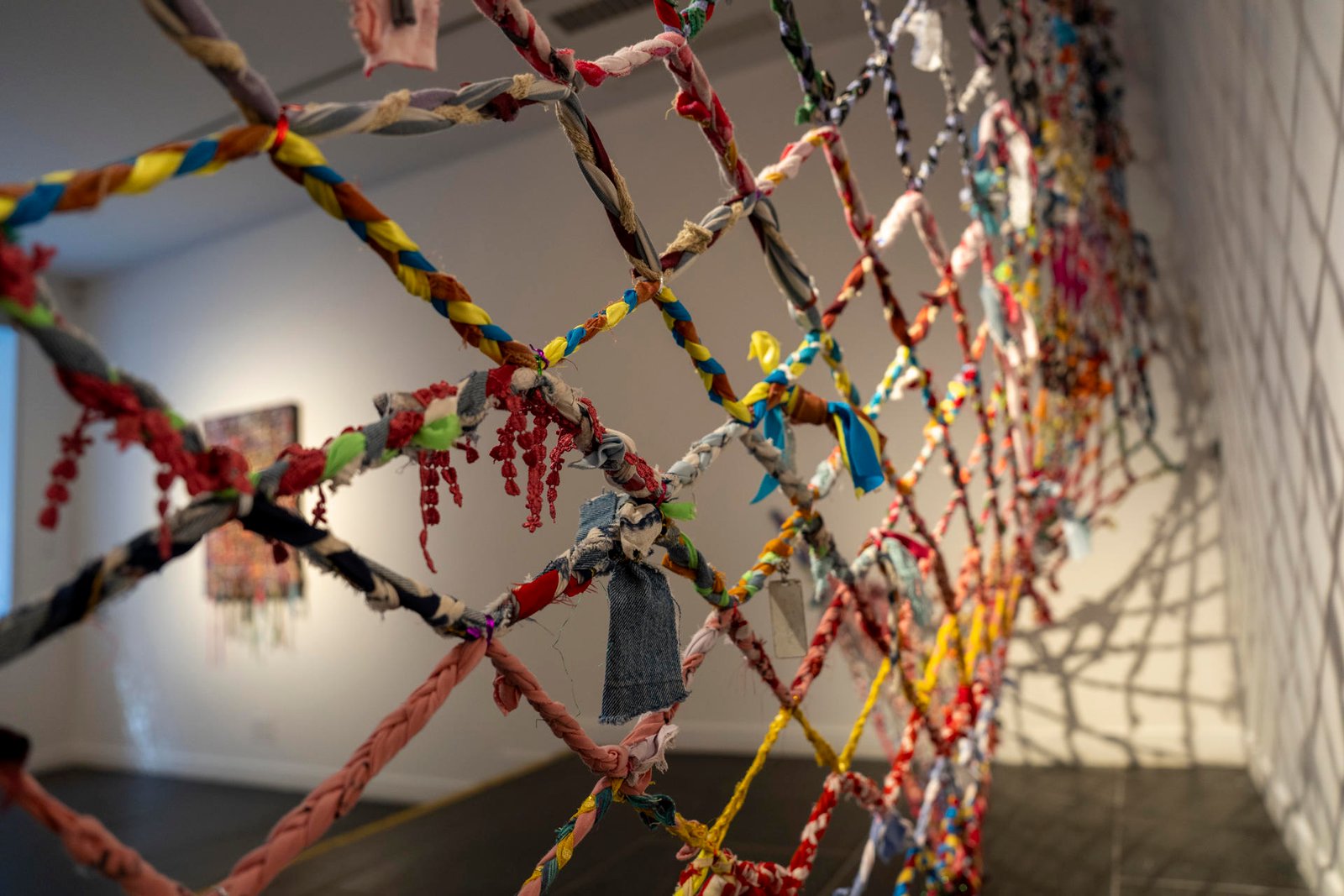 En ‘Aquel Amplex’ (Aquel abrazo), su primera exposición institucional, la artista visual y textil reúne unas trenzas tejidas colectivamente a lo largo de dos años en un proceso que «se siente como un abrazo de alguien que no está ahí, pero está presente», según describe a EFE.