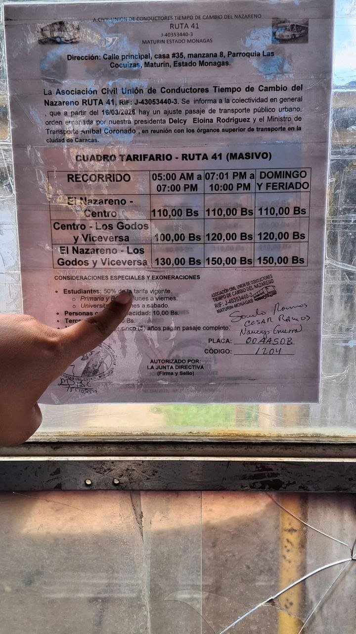 “Nosotros decidimos aumentar el pasaje porque es una autorización de la presidente encargada, Delcy Rodríguez, y el representante del sindicato en Caracas, Aníbal Corona. En vista de que cuando sale la Gaceta Oficial demora hasta 20 días, nosotros, en reunión con otras directivas de líneas de transporte, tomamos esta decisión que no es arbitraria porque las autoridades ya están al tanto. El porcentaje de aumento fue de un 40% aproximadamente”, explicó Saulo Ramos, representante de la ruta 41.