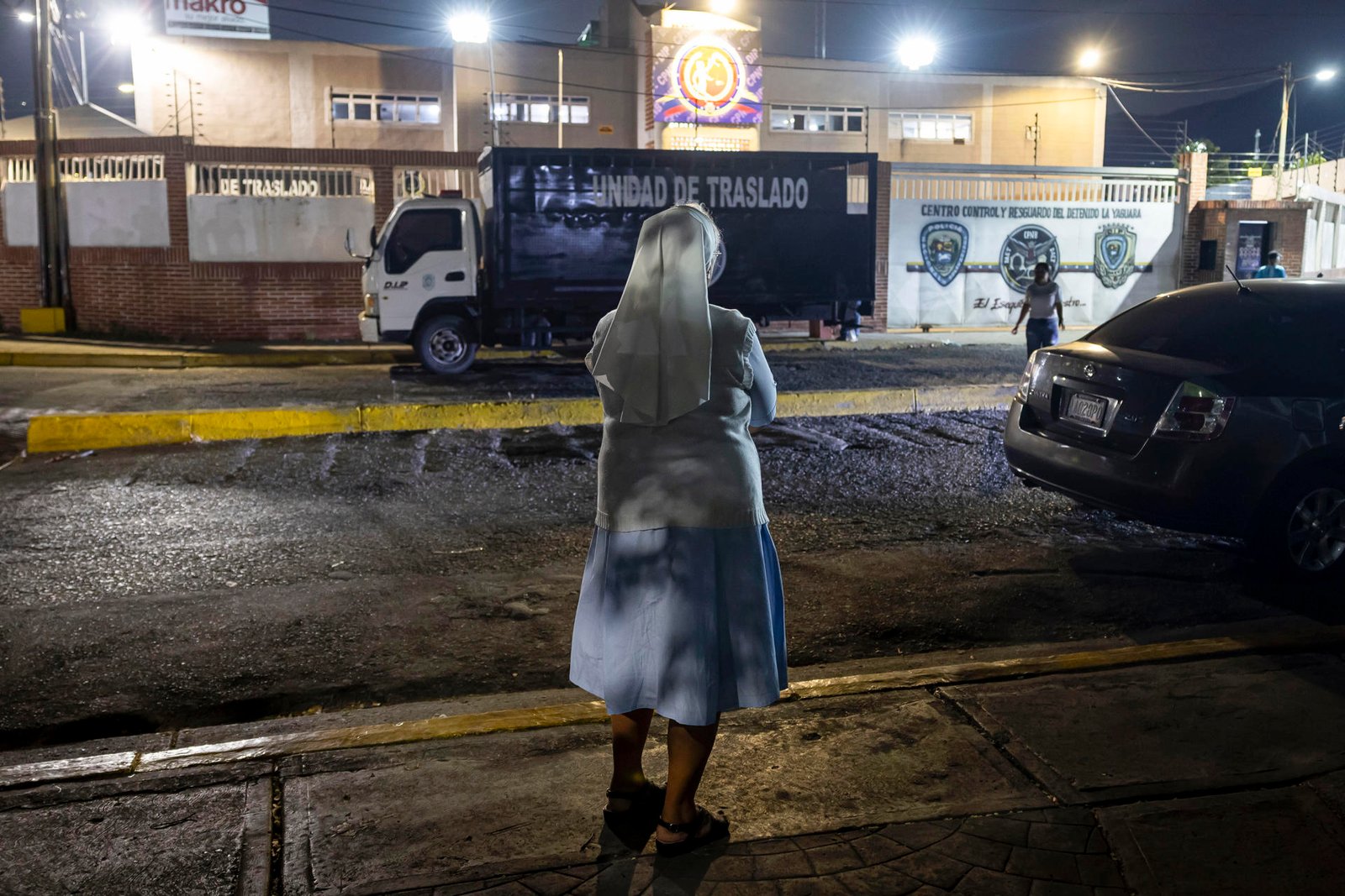 Familiares de presos políticos realizan una vigilia por primera vez a las afueras de una sede de la Policía Nacional Bolivariana (PNB) al oeste de Caracas, desde donde pidieron este miércoles la liberación de sus parientes, a casi una semana de que se aprobara la Ley de Amnistía en Venezuela.