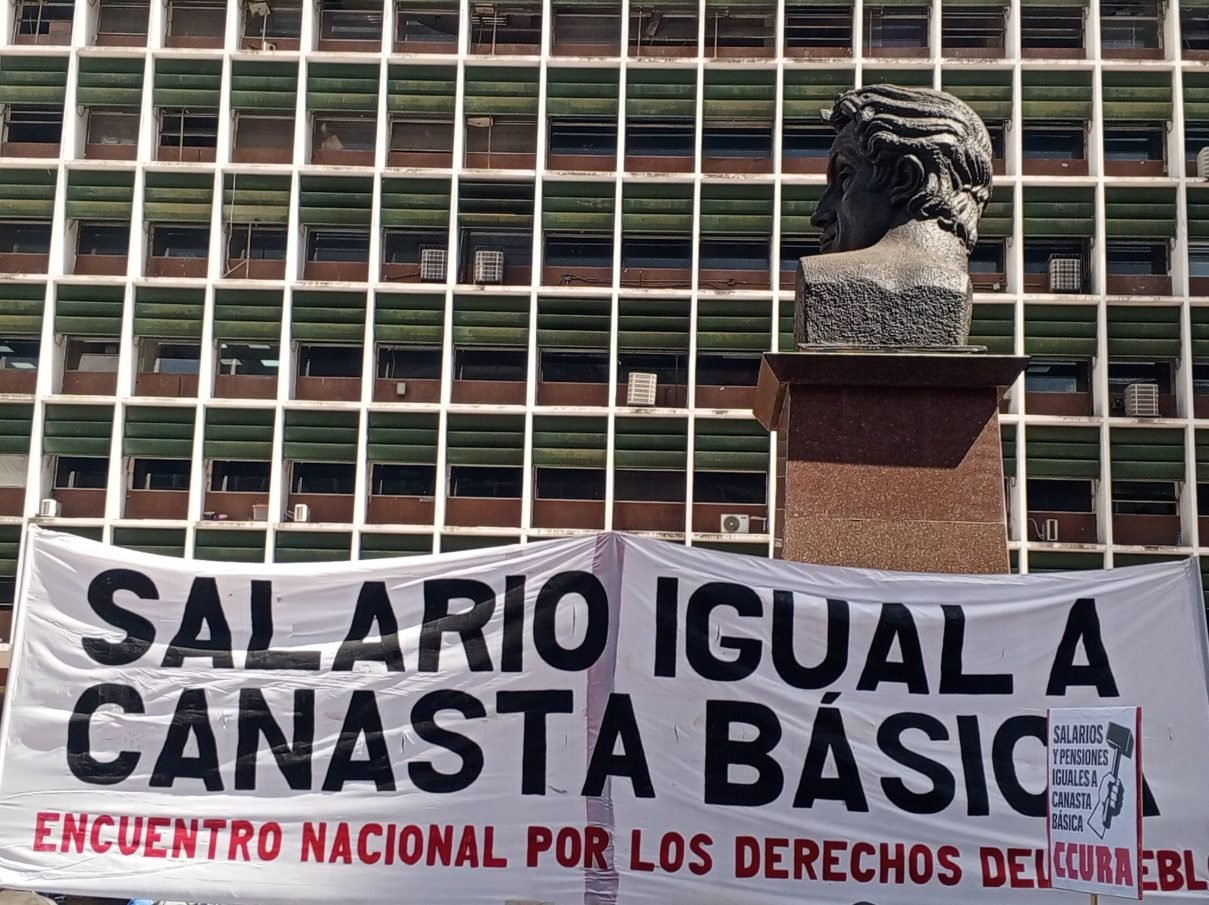 «Por un salario igual a la canasta básica», «no más salarios de pobreza» y «no más pensiones de hambre» son algunos de los reclamos de los asistentes a la convocatoria.