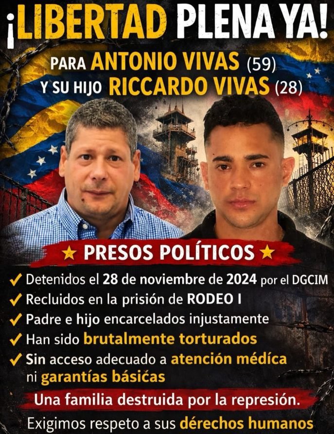 «Exigimos una libertad plena por estos presos políticos inocentes que están siendo reprimidos en el centro de tortura de Rodeo 1. Exigimos la libertad de todos y de Antonio Vivas, que está en peligro, y de Ricardo Vivas, que también está en mucho peligro», sentenció Jesús.