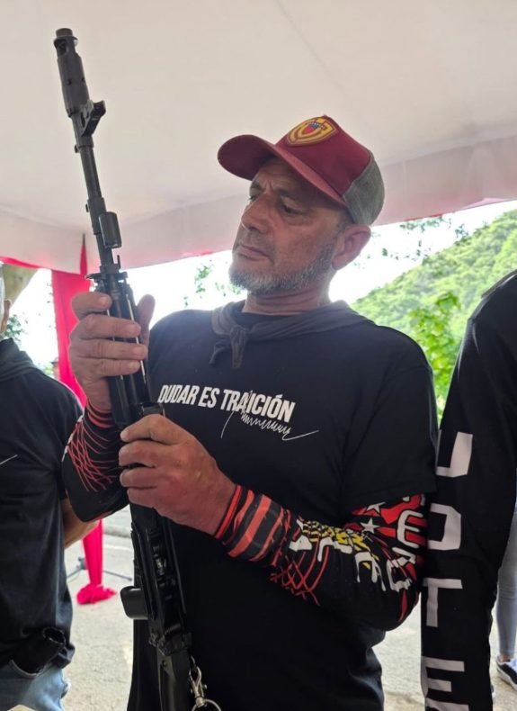 Franklin Castillo Ordaz manipula un arma larga durante los entrenamientos milicianos.