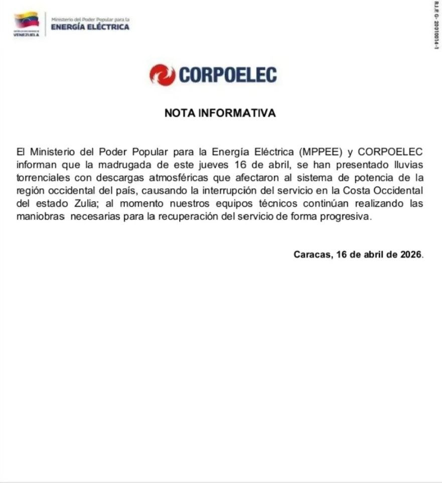 ?Una falla eléctrica de gran magnitud se registró en la región durante la madrugada de este 16 de abril, específicamente en la subestación Cuatricentenario, ubicada en la capital del estado Zulia. La interrupción del servicio supera las 11 horas en buena parte de los sectores de Maracaibo y San Francisco.